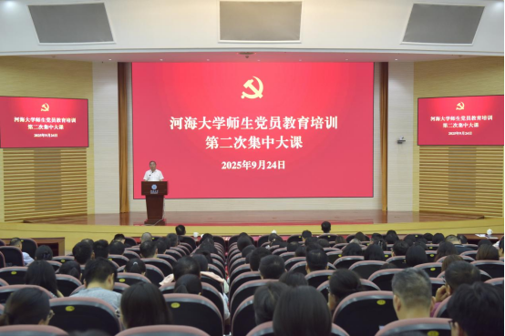 为深入学习贯彻习近平新时代中国特色社会主义思想,深入学习领会习近平总书记关于党性的重要论述精神,进一步锤炼全校师生党员党性修养,全面加强学校党员队伍建设,9月24日下午,河海大学举办师生党员教育培训2025年第二次集中大课。全校师生党员共同听取了中央党校(国家行政学院)教育长张忠军同志主讲的“深入学习贯彻习近平总书记关于党性的重要论述,加强党性修养”专题辅导课。校党委书记杨桂山主持培训并讲话。全校1万余名党员分别在三个校区83个会场参加培训。